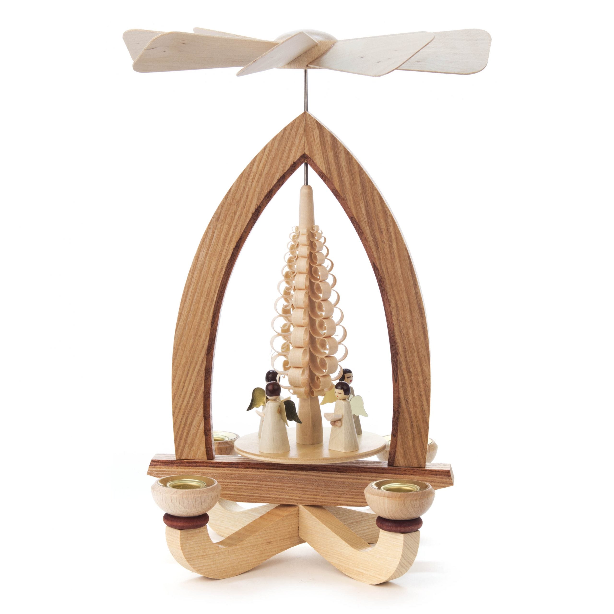 A beatuiful German Angel pyramid. When the candles are lit, the tiers slowly begin to turn creating an enchanting play of light and shadow. Hand crafted in Germany.
