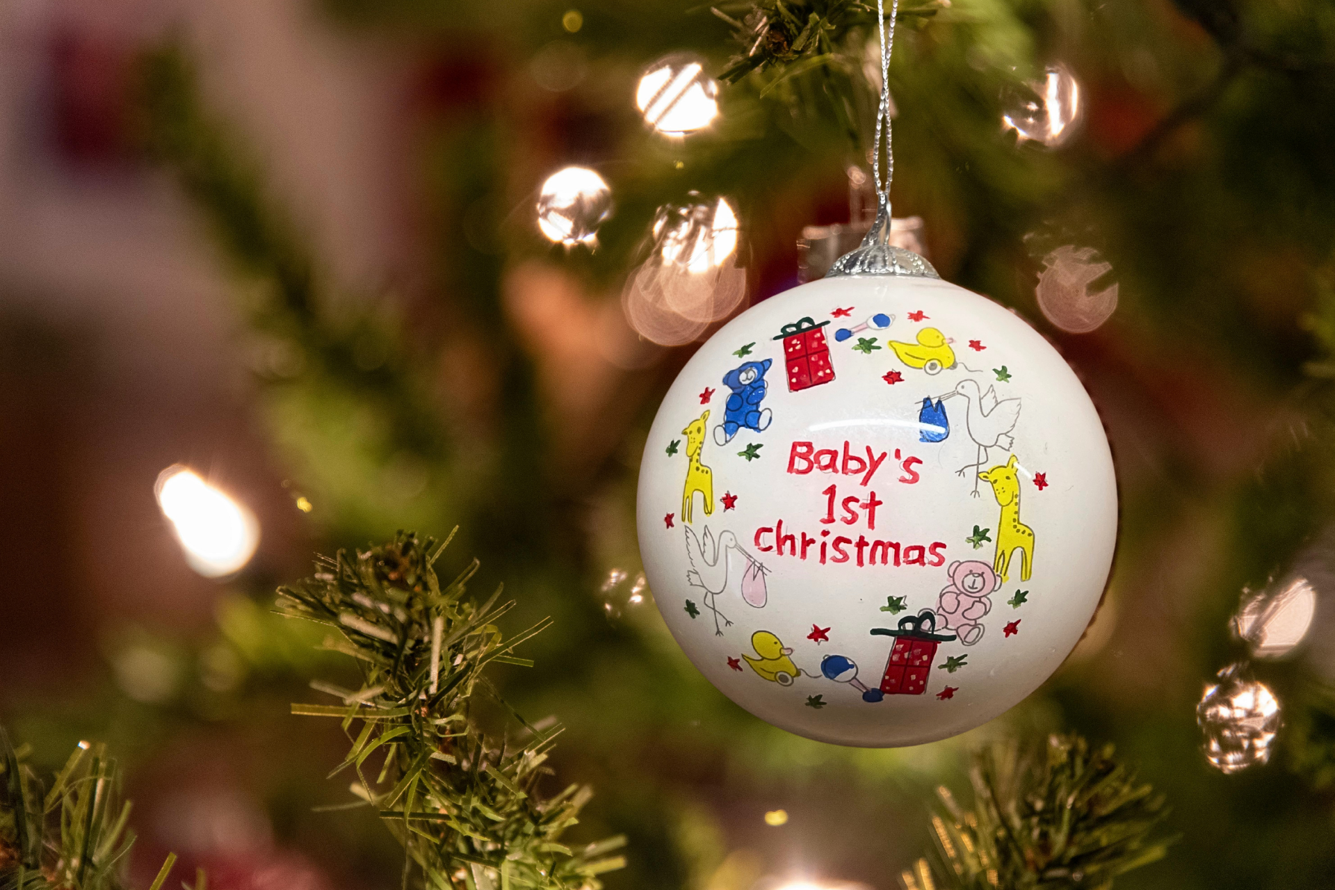 Each bauble is crafted from premium glass and hand-painted with care, creating a keepsake to treasure for years to come. The glossy finish reflects Christmas lights beautifully, making it a standout decoration on your tree or a thoughtful new baby gift. A timeless reminder of that magical first Christmas.