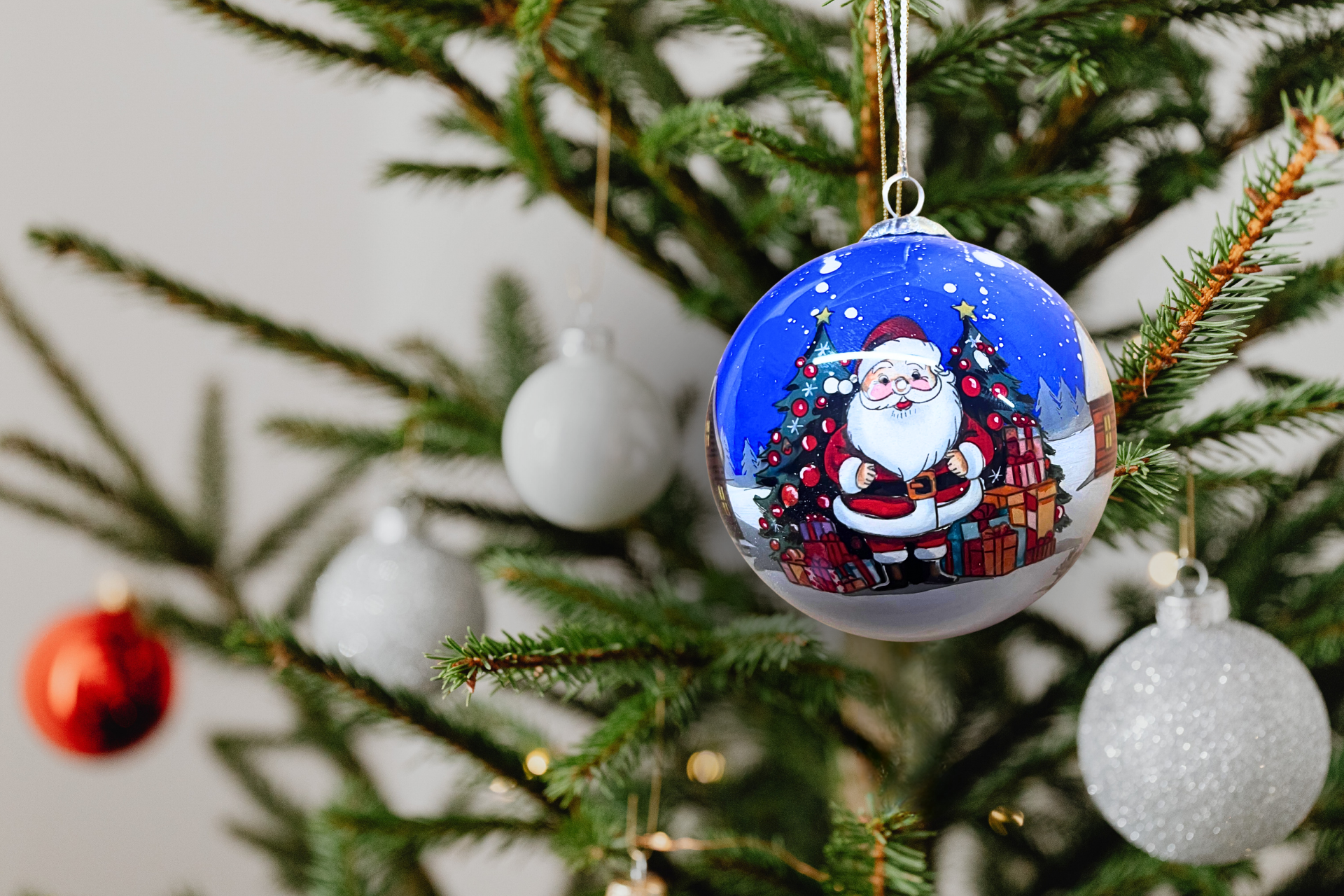 Each bauble is individually hand-painted on high-quality glass, capturing Santa’s rosy smile and the warmth of the festive season in vivid detail. The glossy finish reflects twinkling lights beautifully, making it a standout piece on any Christmas tree.
