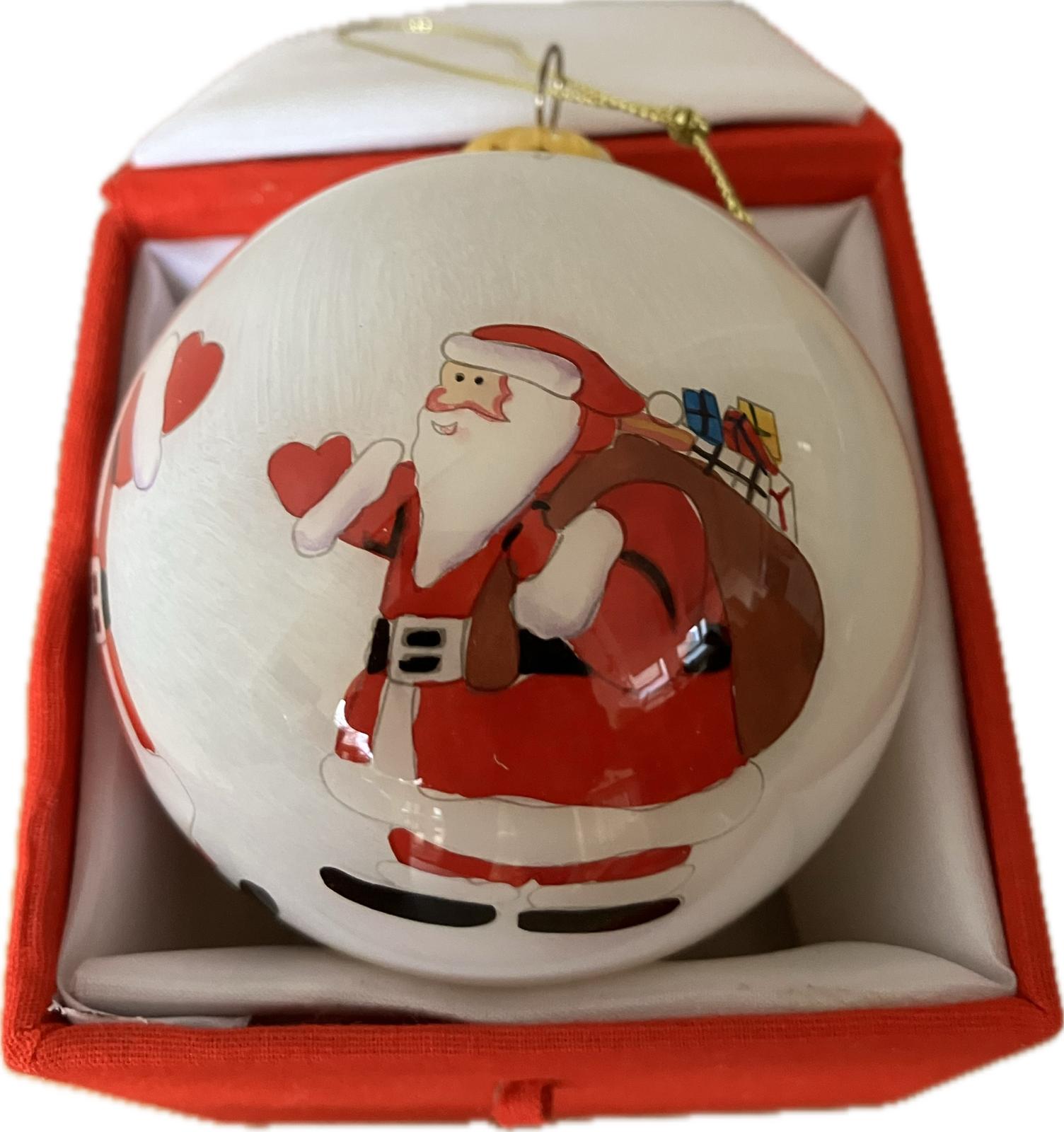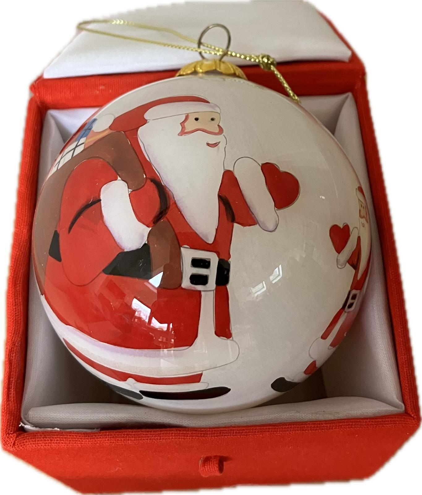 Hand Painted Glass Bauble - Jolly Santa & Sack White