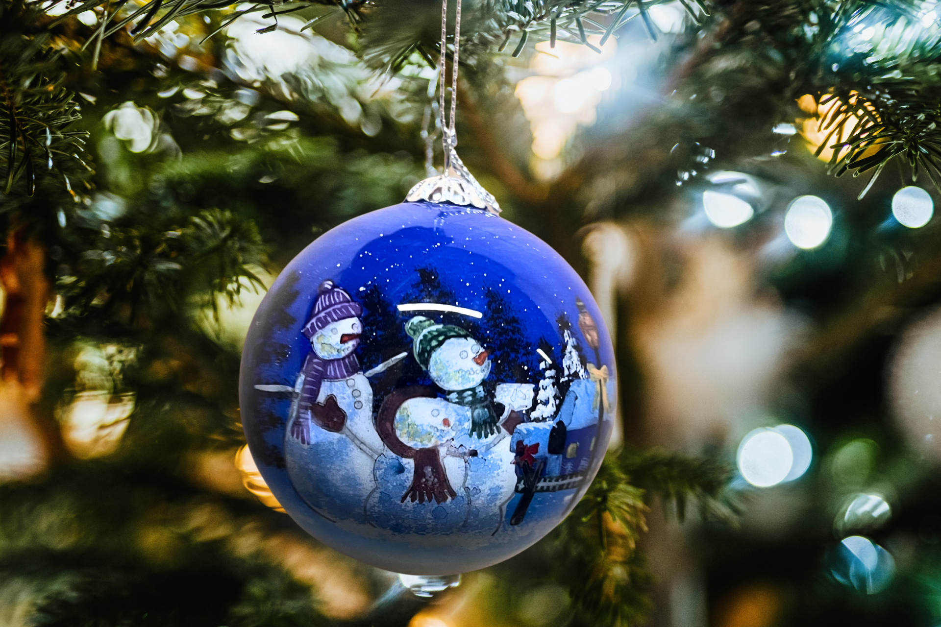Hand Painted Glass Bauble – Snowmen & Flying Santa