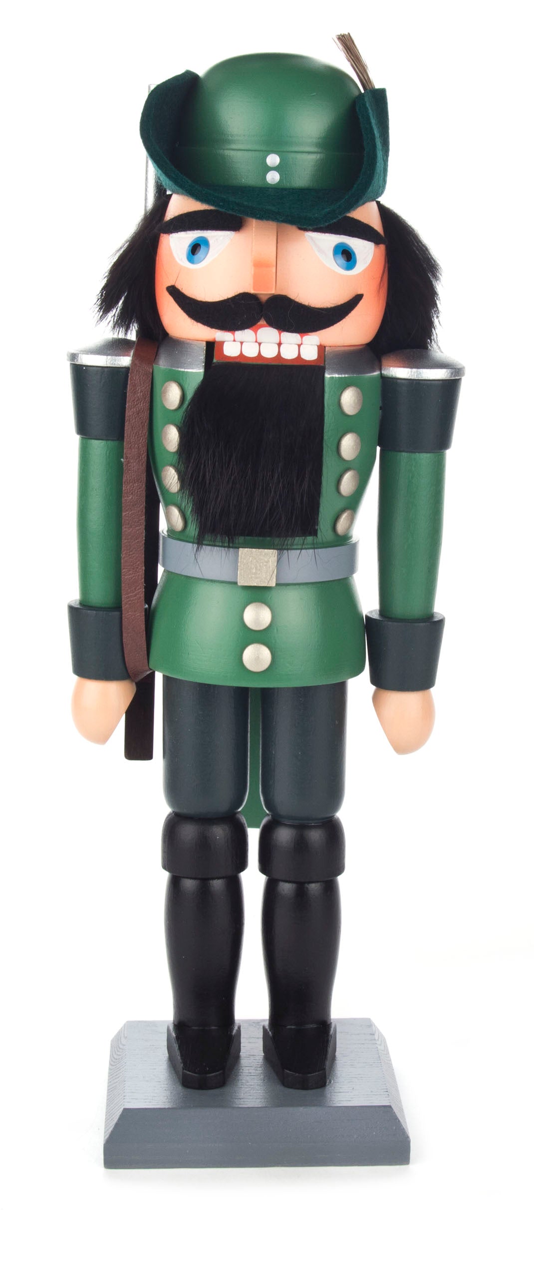 If you are looking for a decoration that combines tradition and quality, then you have come to the right place with our authentic hand made Nutcrackers - hand painted and genuine from German crafters. This one is a 'Hunter' design and is a beautiful painted green colour