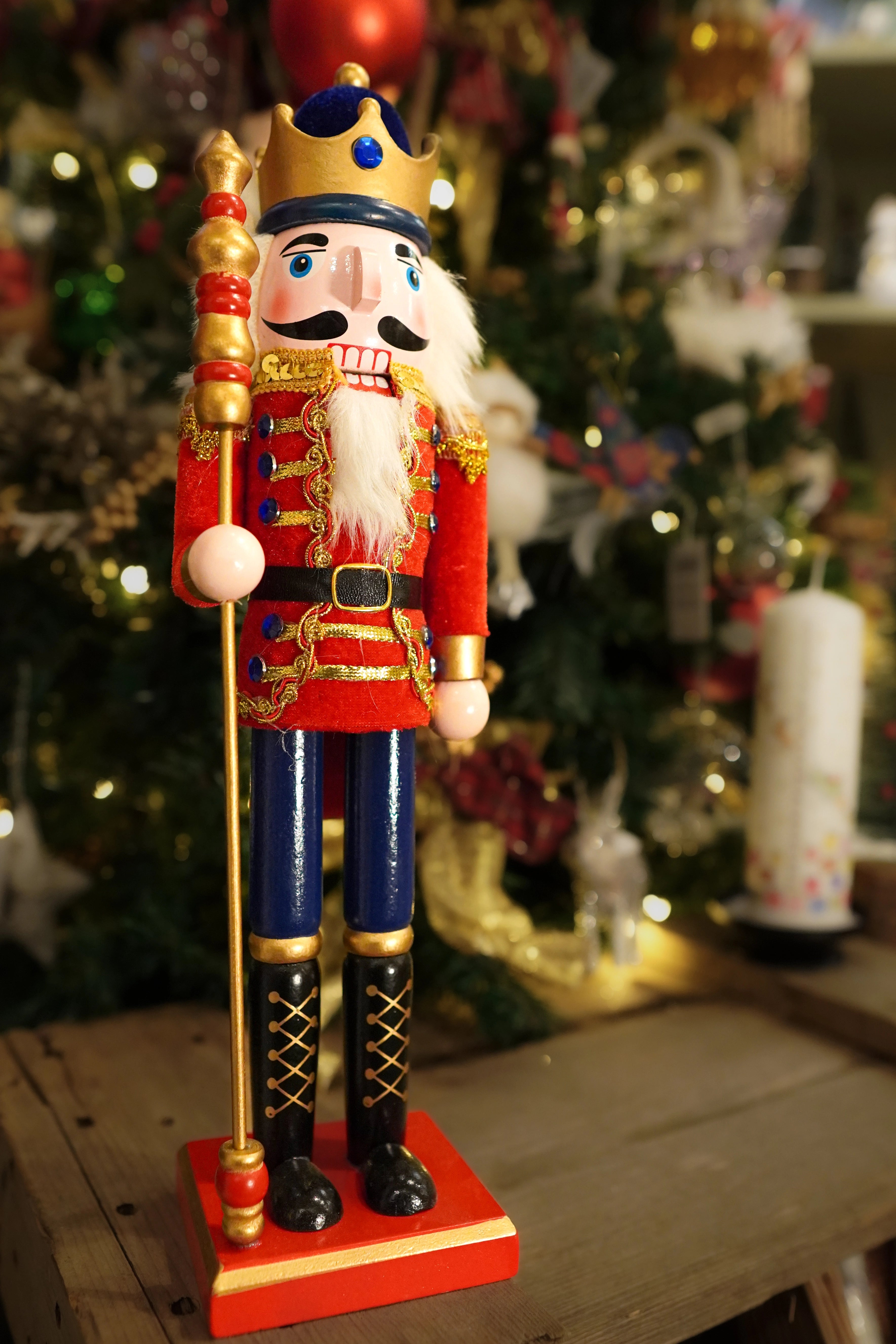 Royal Red and Blue Hand-painted Wooden Nutcracker