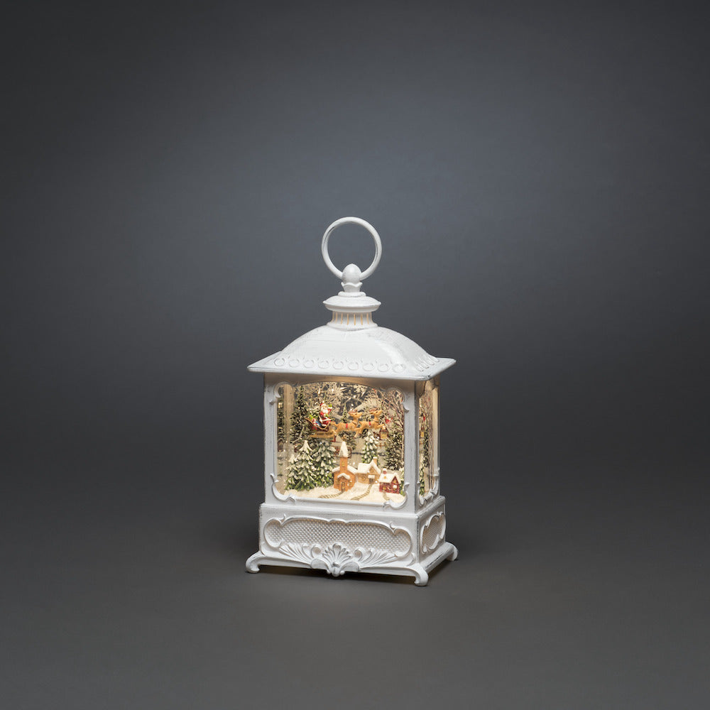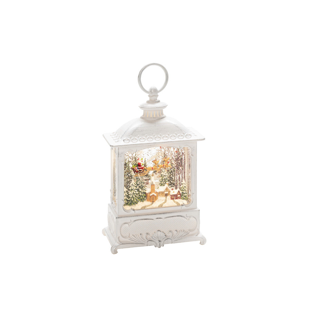 Water Filled Lantern with Flying Santa Claus, 1 warm white LED and timer, 5 hours (Batteries not included), 3xAA Mains adapter may be purchased separately >