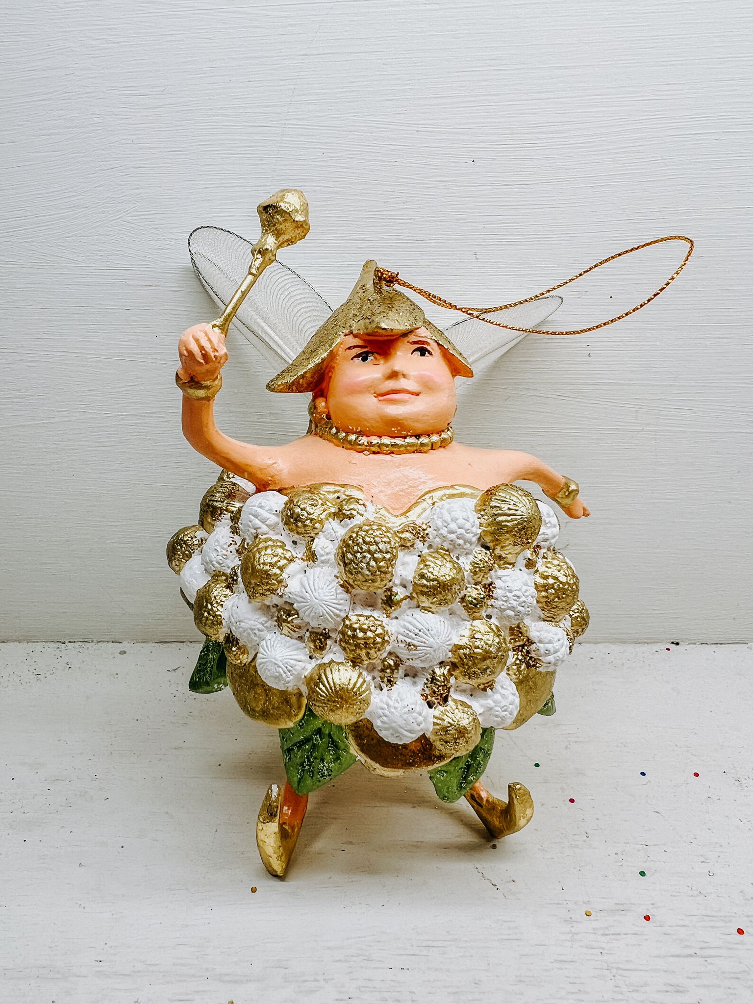 Add a touch of regal sparkle to your collection with the White & Gold Bolsie Queen Fat Fairy - an exquisite hand-finished ornament from the much-loved Fat Fairies range. Crafted from premium resin and carefully hand-painted, this delightful fairy features a shimmering white and gold gown, delicate wings, and a charming crown, radiating elegance and festive cheer.